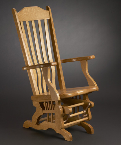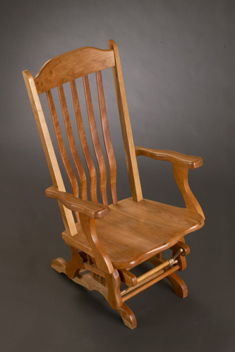 Our exceptional rocker is available in Cherry, Hickory, Walnut, Oak, Sycamore, and Ash.